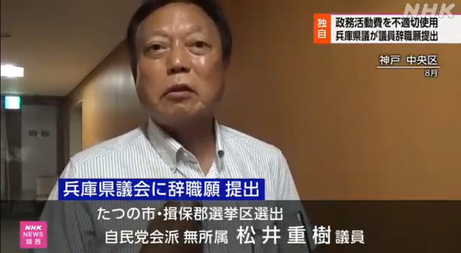 「斎藤知事は知事失格!」と主張していた自民党の松井重樹兵庫県議が辞職 「県庁職員と面会した」と虚偽の申請をして、ホテル代不正支出バレる