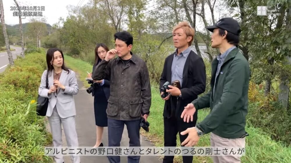 釧路湿原メガソーラー建設現場 登山家の野口健さん視察 タレントのつるの剛士さんも同行