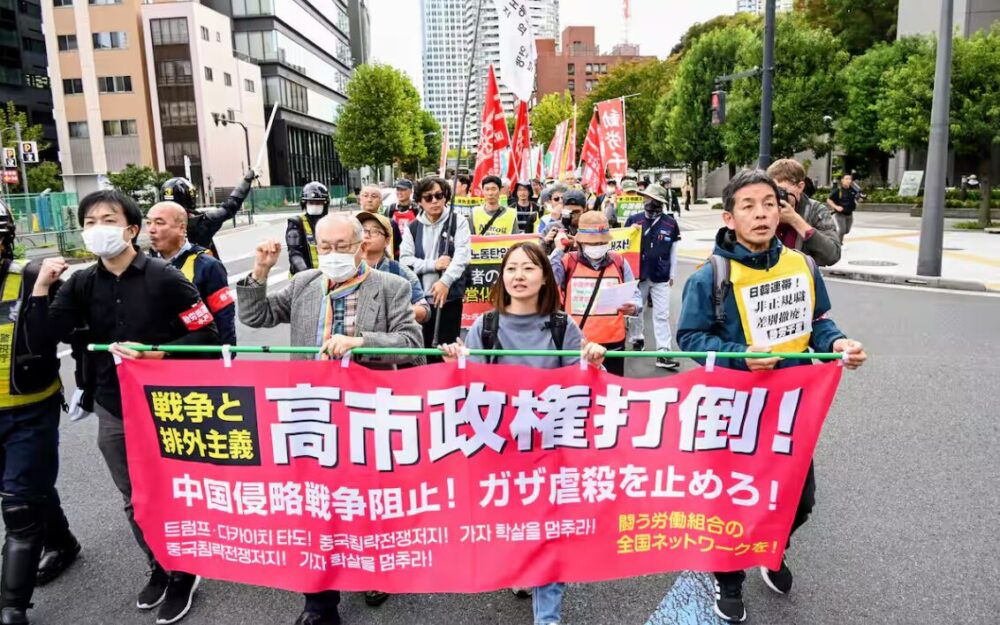 高市早苗政権打倒を目指す人々による「11・2全国労働者総決起集会/改憲・戦争阻止1万人大行進」が2日、芝公園(東京都港区)で開かれ、2150人(主催者発表)が集まった。主催者は自民党と日本維新の会の連立を「『中国への侵略戦争に突進する』」政権」と評しており、参加者は「中国への侵略戦争を阻止するぞ」などと声を上げ、都内を練り歩いた。右翼団体が「どこで中国侵略戦争しているのか」と大声を上げる場面もあった。