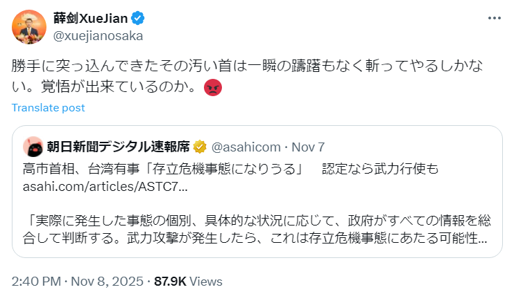 — 薛剑XueJian (@xuejianosaka) November 8, 2025
