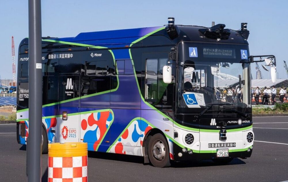 大阪万博で使用されたEVモーターズ・ジャパンのEVバス – 撮影=加藤博人(株式会社プレジデント社)