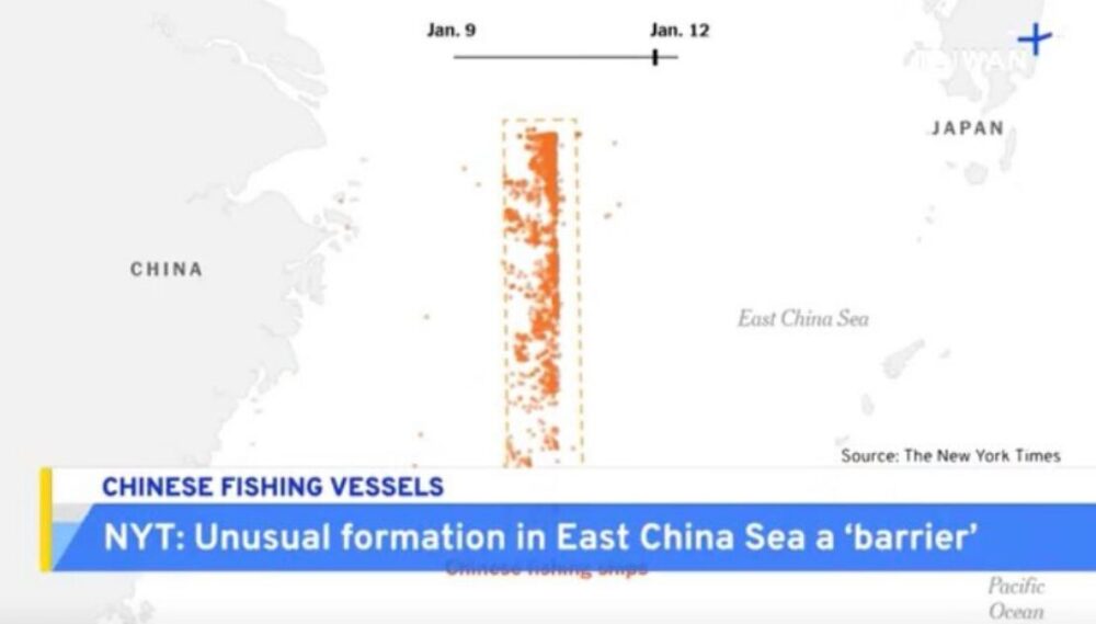 【北京共同】東シナ海の日中中間線付近の海域で昨年末から少なくとも2度にわたり、最大約2千隻もの中国漁船が密集して活動し、南北470キロにも及ぶ“壁”を構築していたことが30日、分かった。地理空間情報分析を専門とする「ingeniSPACE」社が船舶自動識別装置(AIS)の情報で分析した。