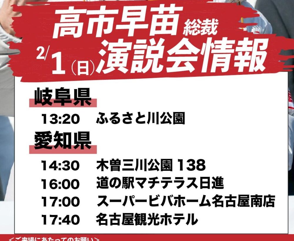 首相は同日午後に予定している地方遊説は行う考えで、「今日も皆様に自民党の政策の大転換についてお届けするべく、岐阜、愛知に伺います」とつづった。