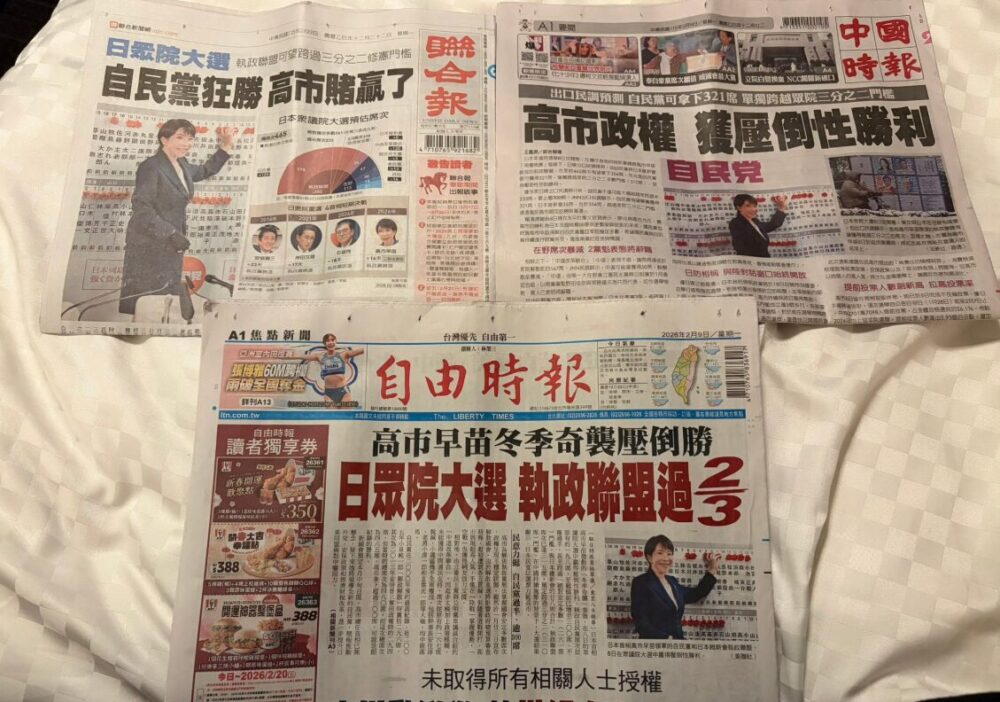 台湾の新聞は全紙、高市自民党の大勝利を喜んでくださってます。