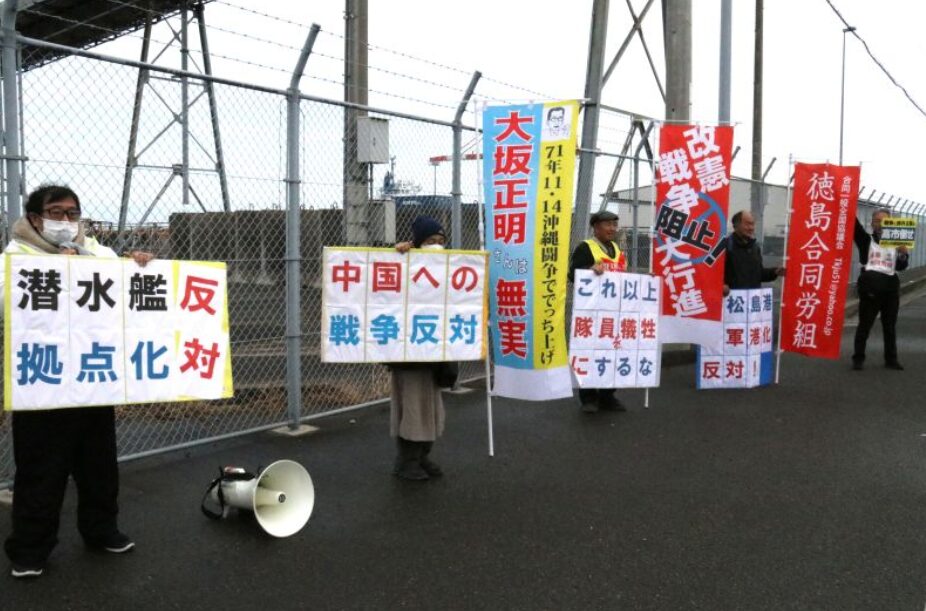 海自潜水艦「せいりゅう」小松島港入港に抗議 住民団体、「中国への戦争は反対」|