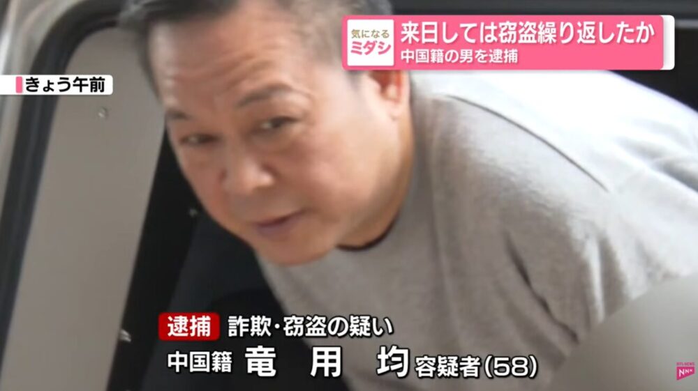 この2年間で17回入国。中国籍の竜用均容疑者(58)。日本に来ては、窃盗を繰り返していたとみられています。