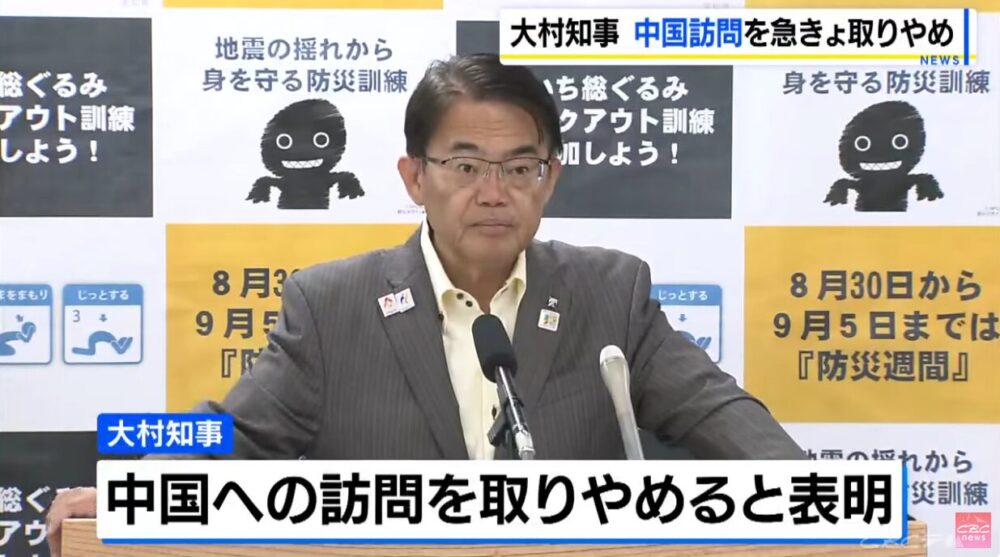 中国側から「急きょ重要な公務が入ったため対応が難しくなった」との連絡 愛知県の大村知事が8月24日からの江蘇省など中国訪問を取りやめに