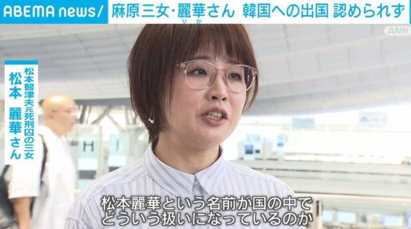 麻原彰晃こと松本智津夫元死刑囚の三女・松本麗華さんは27日、韓国の映画祭に参加するため羽田空港からソウルに向かう予定でしたが、出国が認められませんでした。理由は明らかになっていませんが、搭乗カウンターの職員が韓国大使館に連絡したところ入国できないと言われたということです。松本さんは2017年にも韓国に向かおうとしましたが、出国できませんでした。