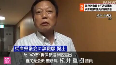 「斎藤知事は知事失格!」と主張していた自民党の松井重樹兵庫県議が辞職 「県庁職員と面会した」と虚偽の申請をして、ホテル代不正支出バレる