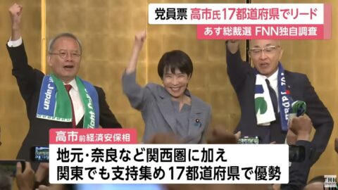 【自民党総裁選 都道府県連調査】全国党員票は高市氏17都道府県で優勢… 次いで小泉氏15県 FNN