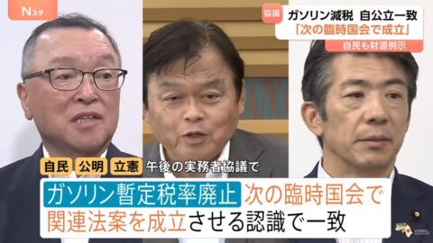 ガソリン暫定税率廃止「次の臨時国会で成立」自公立合意も… 自民党の宮沢税調会長、他の税金の”増税”を示唆