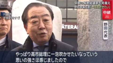 立憲民主党・野田代表「衆院解散について、報道が相次いでいます。自民党に代わる中道政権を作る目標を掲げている私たちは、仮に解散となれば、堂々と受けて立ち、党一丸となって、私たちの考え方を訴えて行きます」
